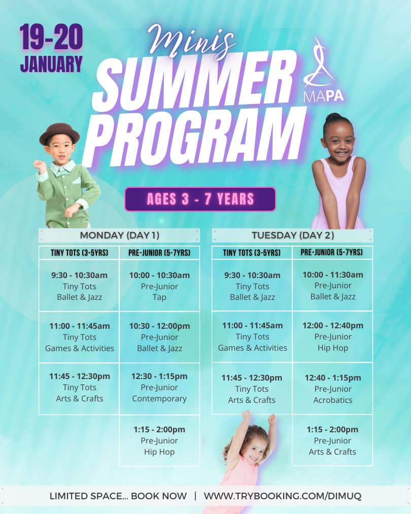 MAPA’s Summer School Holiday Program offers two fun-filled days of dancing and creative activities designed to keep children active, engaged, and moving during the school holidays.|